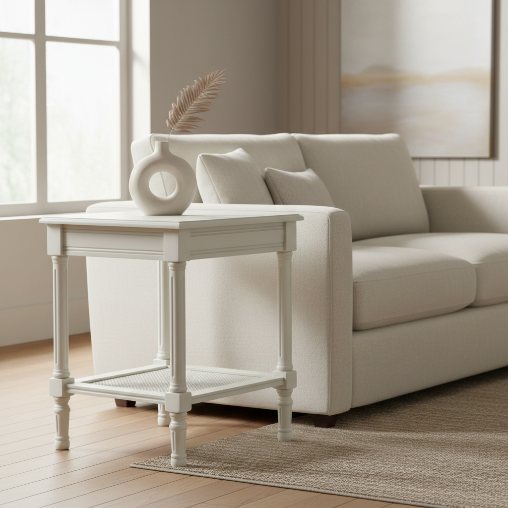 Elevate your interior styling with the Belmont Rattan Collection Table. Designed with a sophisticated “organic-meets-structured” aesthetic, this piece features tactile rattan panelling set against a smooth, polished white frame. The natural weave catches the light beautifully, adding depth and a warm, airy feel to any room.