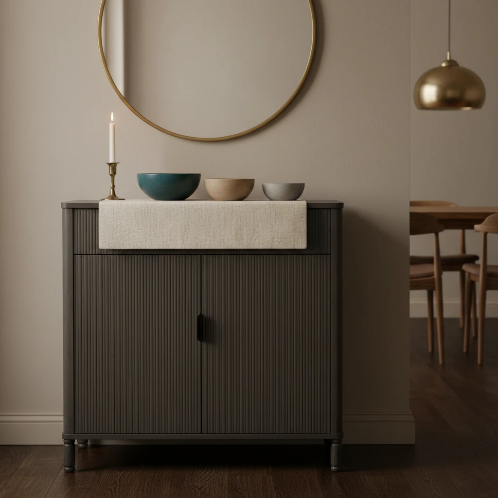A beautifully designed cabinet combining Mediterranean-inspired ceramic detailing with a modern rectangular form. Perfect for living rooms, hallways, dining spaces or retail display styling. Offers practical storage while adding a decorative focal point to contemporary and classic interiors alike.
